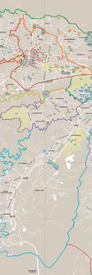 Other historical layers are superimposed on the initial grid, with density and zoning that have resulted in punctual buildings amid square blocks, with heights and shapes that break with the colonial profile and the continuous border of the traditional streets. Large scale interventions, like the National Library, are juxtaposed to the traditional small scale city center, and hinder the perception of the charming colonial context. There are also distinguished modern interventions that enhance their surroundings, like the Banco Central de Venezuela, with extraordinary architectural quality, or the Banco Metropolitano headquarters, of elegant design and perfect correspondence with the context; or the Zingg building, with its shopping passage. Toward the south limit of the grid, a large number of houses between party walls and with courtyards survive deterioration without much success, coexisting with nondescript condominium buildings, built after the seventies and that break the parameters of the founding city blocks, of continuous borders and low height.